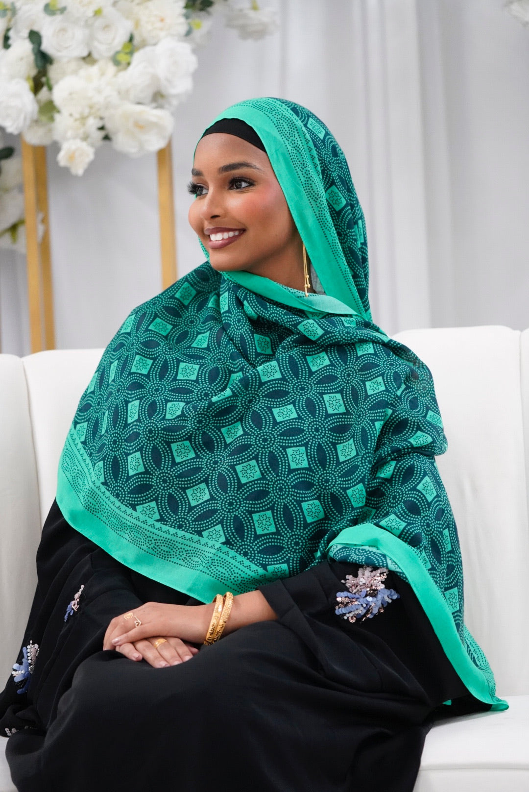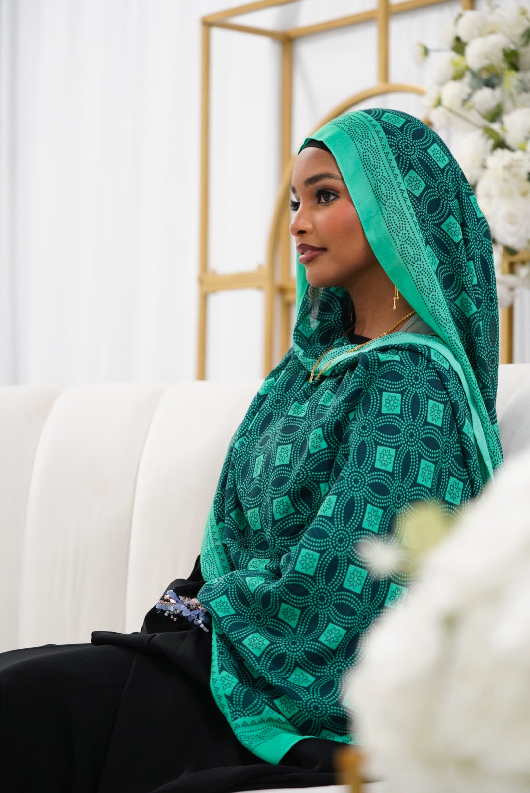 Step Into Elegance With This One-Of-A-Kind Somali Print Modal Hijab. Designed With A Stunning Emerald Green And Deep Navy Geometric Star Pattern, This Hijab Brings Out The Beauty Of Traditional Somali Prints While Giving You The Comfort Of Premium Modal Fabric.